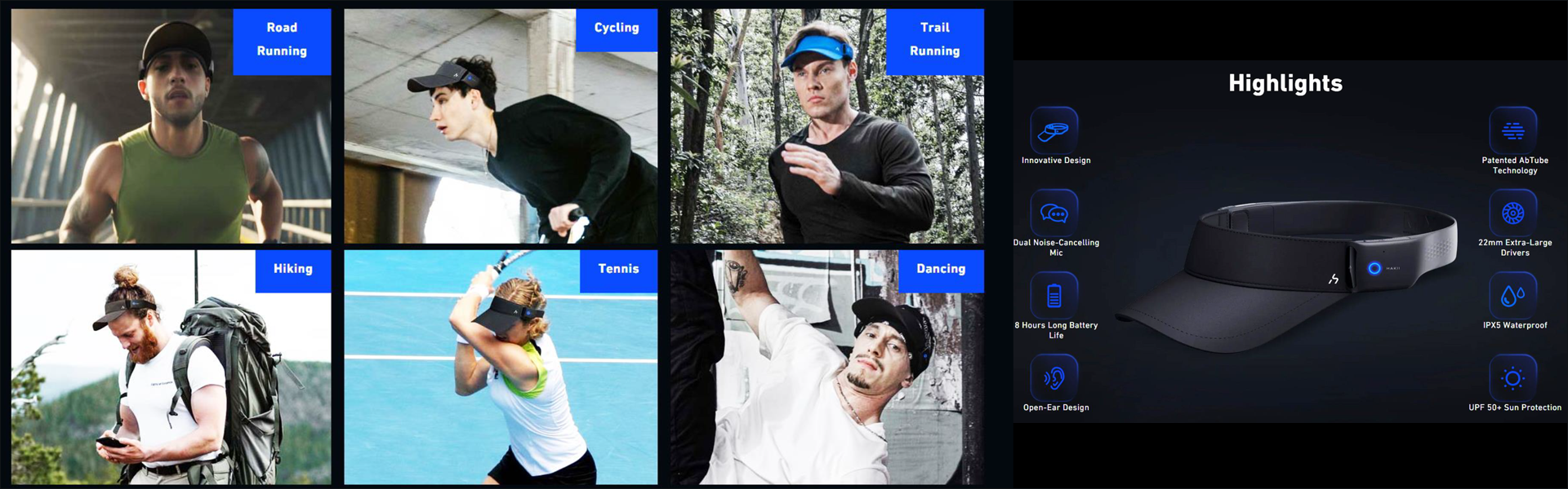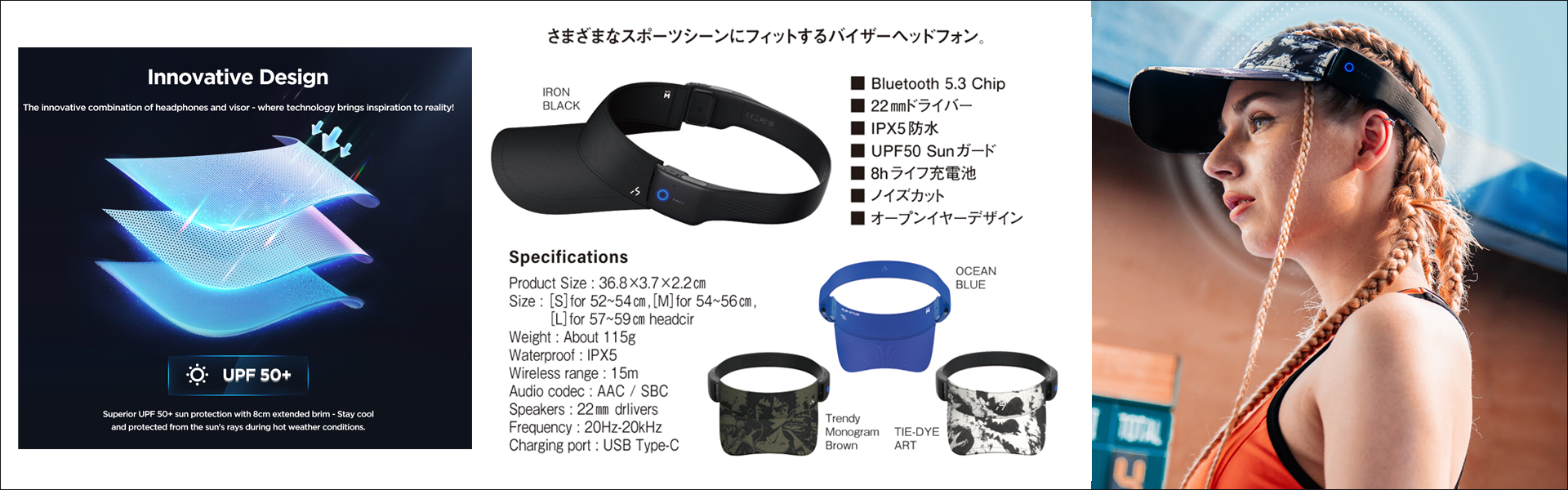 カスタマイズやニーズに合わせて交換可能なつばのオプションを提供、PX5防水基準設計で、水しぶき、汗、雨に耐えるように作られており、屋外での使用に最適です。