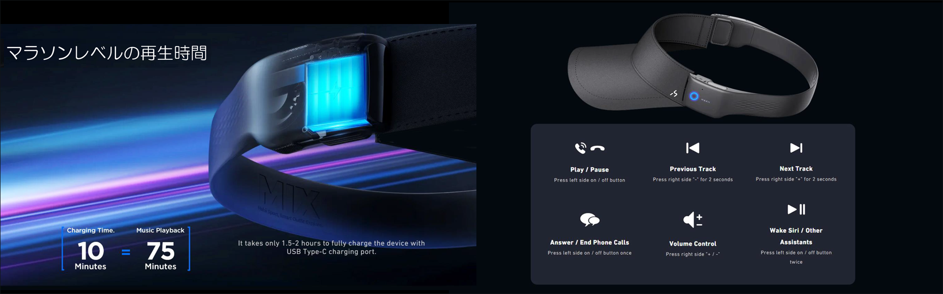最大8時間の再生時間を持つ HAKII MIXV は、フルマラソンにも十分なパワーを発揮します。