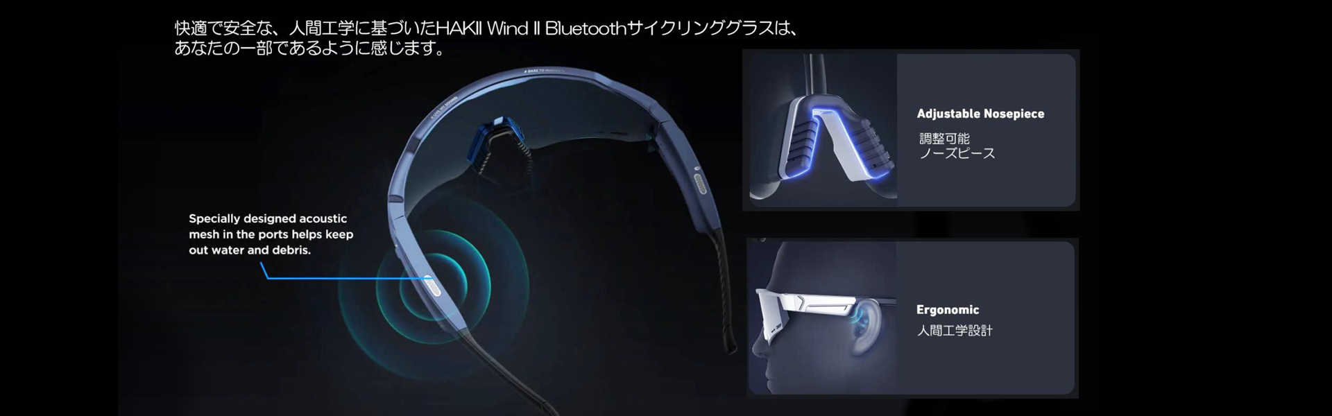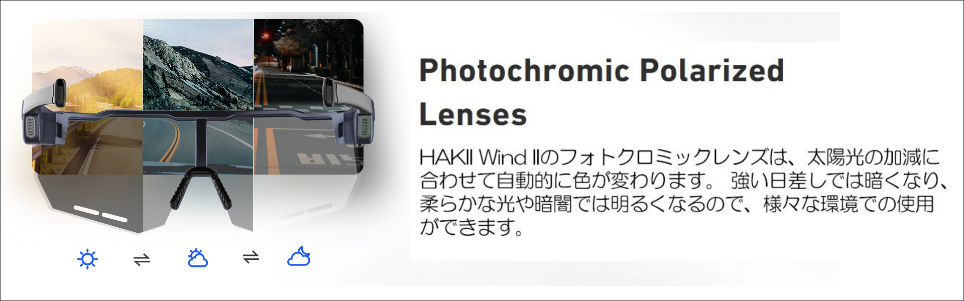 HAKII Wind II Bluetooth ラン・サイクリンググラスの取り外し可能なフレームは、2種類の