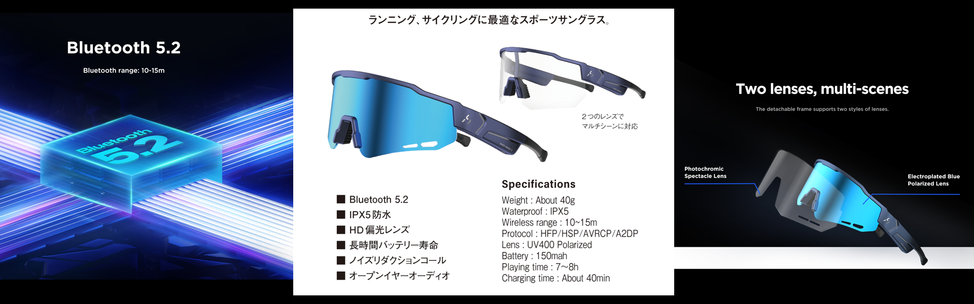 ラン・サイクル用 Bluetooth スポーツサングラス